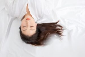 睡眠不足はストレスとなる他、髪の成長に欠かせないホルモンの減少によ って十分に髪が育たなくなり、ハリやコシが損なわれてしまう原因にもな ってしまいます。 十分な睡眠を確保することも大切です。